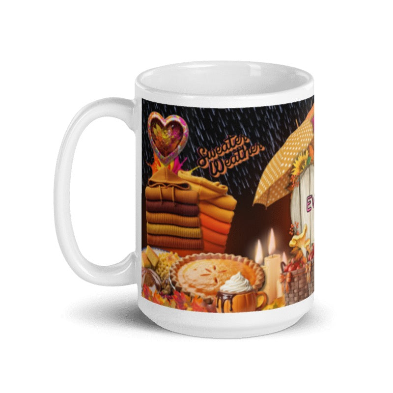 It's FALL umbrella styling it up. You want something that will make you smile everytime you pick it up, then this is the mug for you. The details are amazing and you want to get it while supplies last. Imagine drinking out of this mug/tumbler and it has your name on it and It just make you think of fresh air. Get yours today.